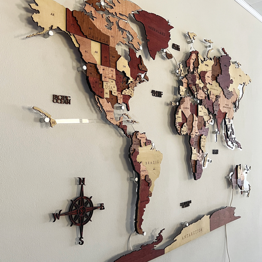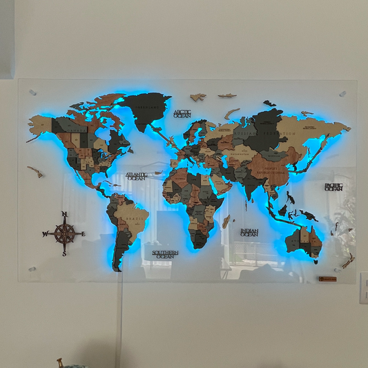 Mapa Mundial en Madera - Lámina Completa Acrílico