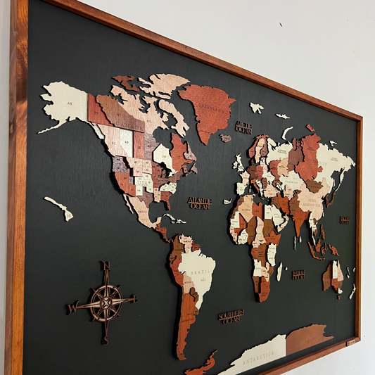Mapa Mundial en Madera Enmarcado